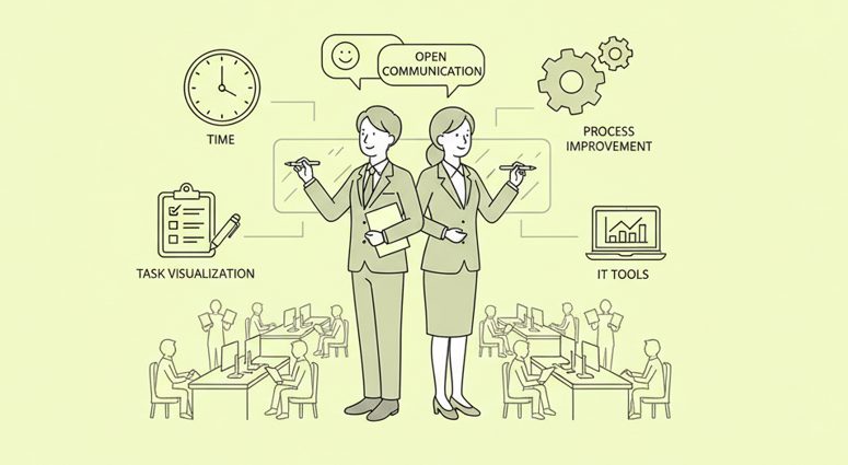 見えてきた課題に対しては、業務の整理や再配分、手順の見直しなど、現実的な改善策を一つずつ検討していくことになります。場合によっては、ITツールの活用が助けになることもあるでしょう。